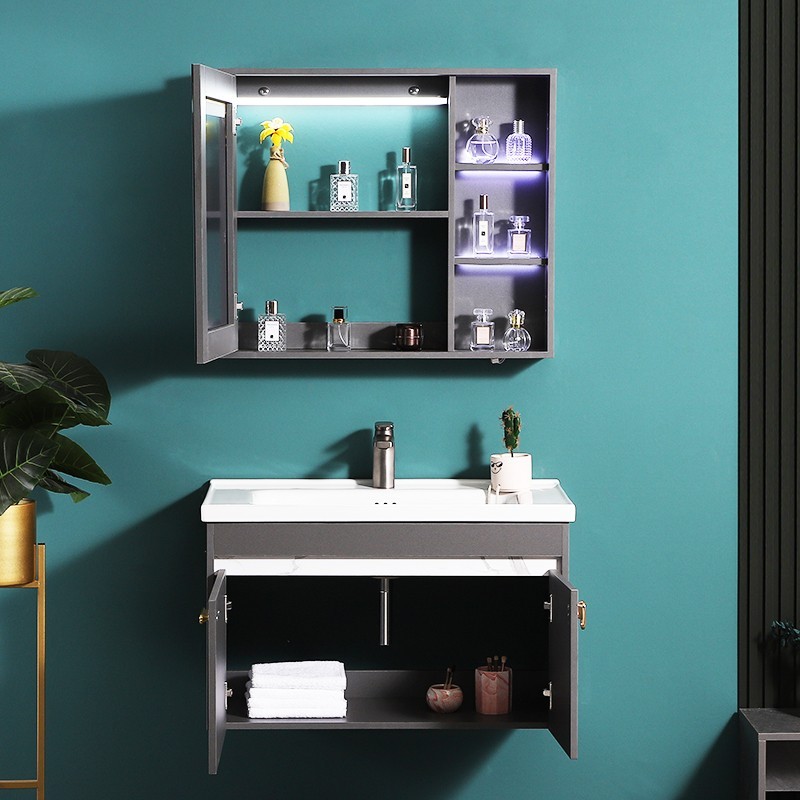 太陽雨浴室柜/主柜80CM/鏡柜/一體陶瓷盆/多層實木/免漆/手感LED智能鏡/YD1007