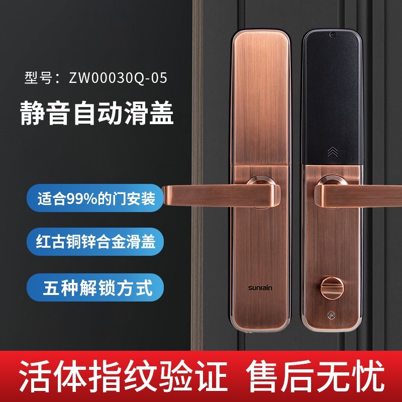 太陽雨智能鎖/紅古銅鋅合金滑蓋/5種開鎖/防撬報警/鋼體鎖芯/ZW0003